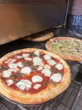 Lot of our testy tomato sauce fresh basil,drizzle of extra virgin olive oil and fresh mozzarella